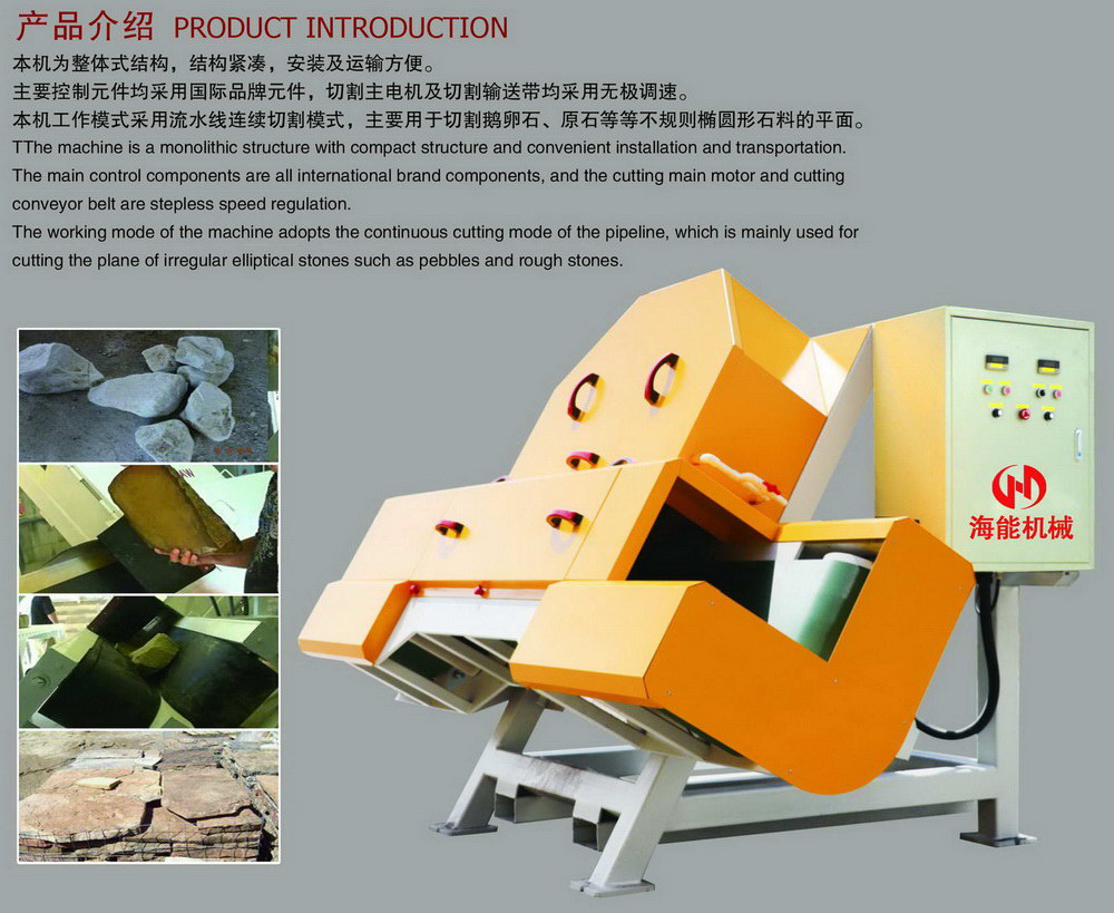 Режим работы этой машины включает в себя непрерывный режим резки по конвекселям, в основном для разрезания плоскости гальки, первичного камня и других нерегулярных эллиптических камней.